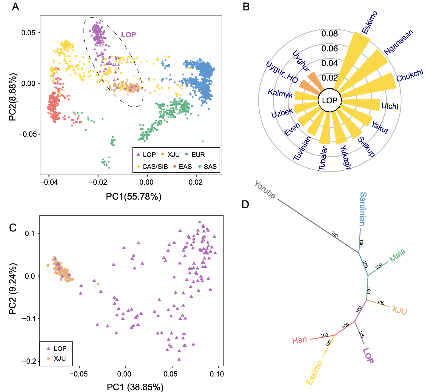 2025年4月16日,黑料社 /人类表型组研究院徐书华团队在分子进化领域专业期刊Molecular Biology and Evolution发表题为“Sex-biased admixture followed by isolation and adaptive evolution shaped the genomic and blood pressure diversity of the LopNur people”《性别偏向性混合、隔离与适应性进化共同塑造罗布人基因组多样性及血压表型》的研究论文。通过全基因组深度测序、群体遗传学建模及表型关联分析,首次系统解析了新疆罗布人独特的遗传演化历史与高血压高发的进化遗传机制,为复杂疾病的环境-基因互作研究及精准医学应用提供了新范式。