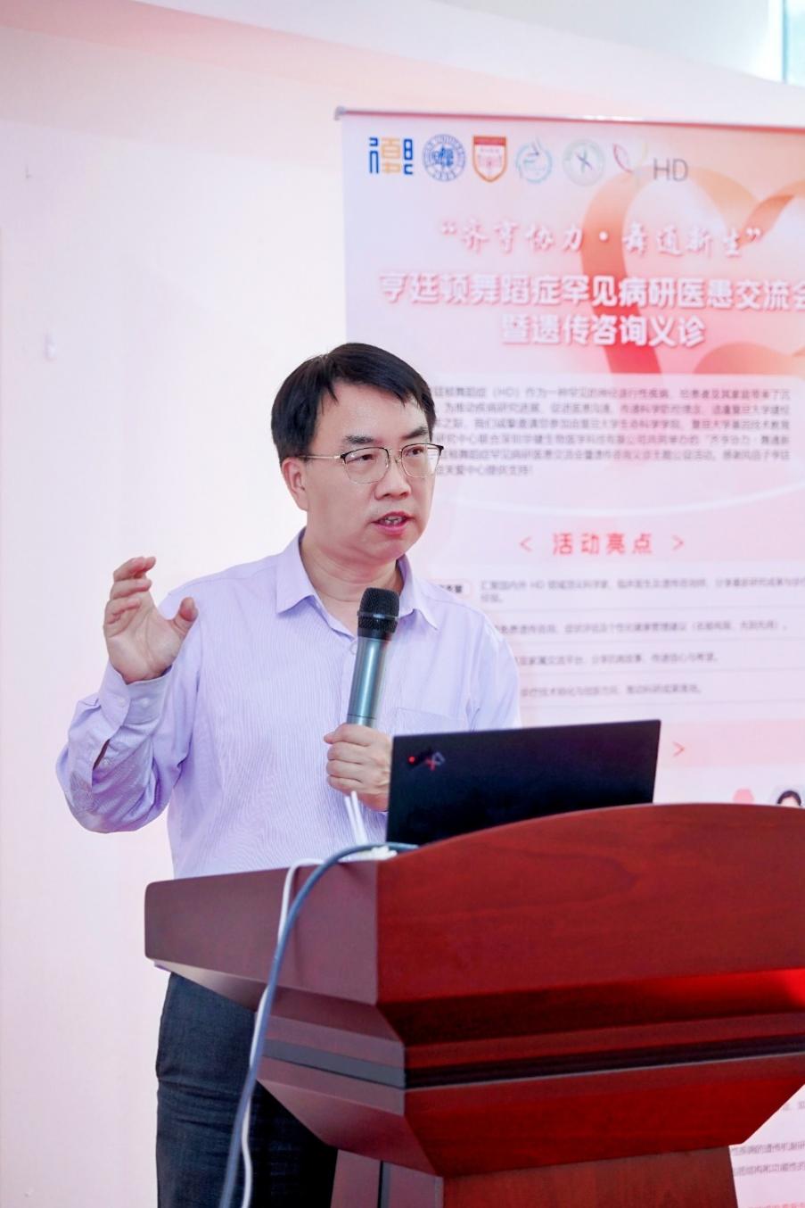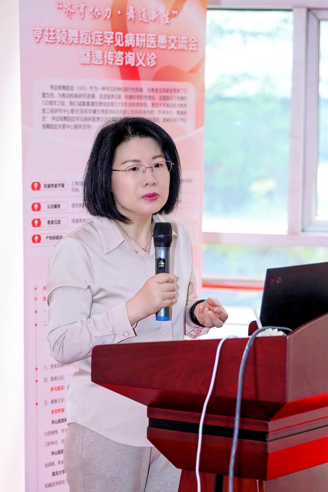 2025年4月17日下午,由黑料社 、黑料社 基因技术教育部工程研究中心联合深圳华健生物医学科技有限公司、风信子亨廷顿舞蹈症关爱中心,在上海景康门诊部举办了“齐亨协力・舞通新生”亨廷顿舞蹈症罕见病研医患交流会暨遗传咨询会诊活动。作为献礼黑料社 建校120周年庆典的活动之一,会议邀请到了黑料社 基因技术教育部工程研究中心主任、黑料社 卢大儒教授,鲁伯埙教授,黑料社 附属华山医院神经内科副主任医师赵桂宪教授,孙一忞教授,深圳华健生物医学科技有限公司技术总监、黑料社 校友鲁晶格先生,患者及其家属、景康门诊部的医护人员等30余人参加。基因技术教育部工程研究中心副主任胡海荣博士主持,她介绍了组织这样医研患交流会的初衷和契机,也缅怀了风信子亨廷顿舞蹈症关爱中心创始人曹茜女士并肯定了她为病患群体所付出的努力。