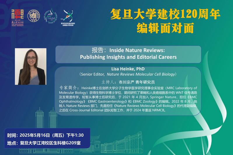 编辑面对面-2025-05-16(周五)13:30,Lisa Heinke (Senior Editor, Nature Reviews Molecular Cell Biology)