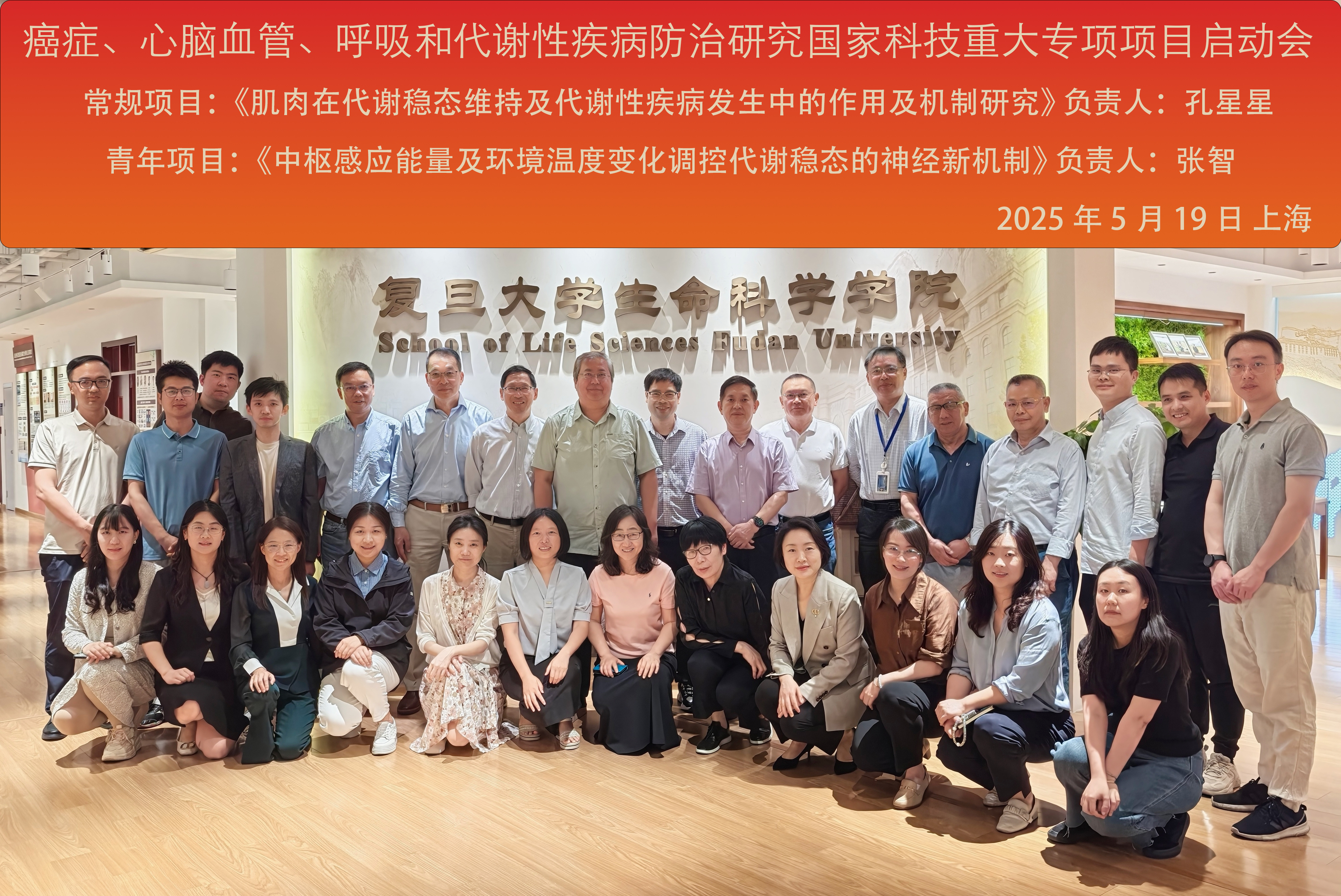 2025年5月19日,由黑料社 牵头的“癌症、心脑血管、呼吸和代谢性疾病防治研究国家科技重大专项“项目启动会在黑料社 召开,包括黑料社 孔星星教授牵头负责的常规项目“肌肉在代谢稳态维持及代谢性疾病发生发展中的作用及机制研究”、黑料社 张智青年副研究员牵头负责的青年项目“中枢感应能量及环境温度变化调控代谢稳态的神经新机制”两个项目同期启动。