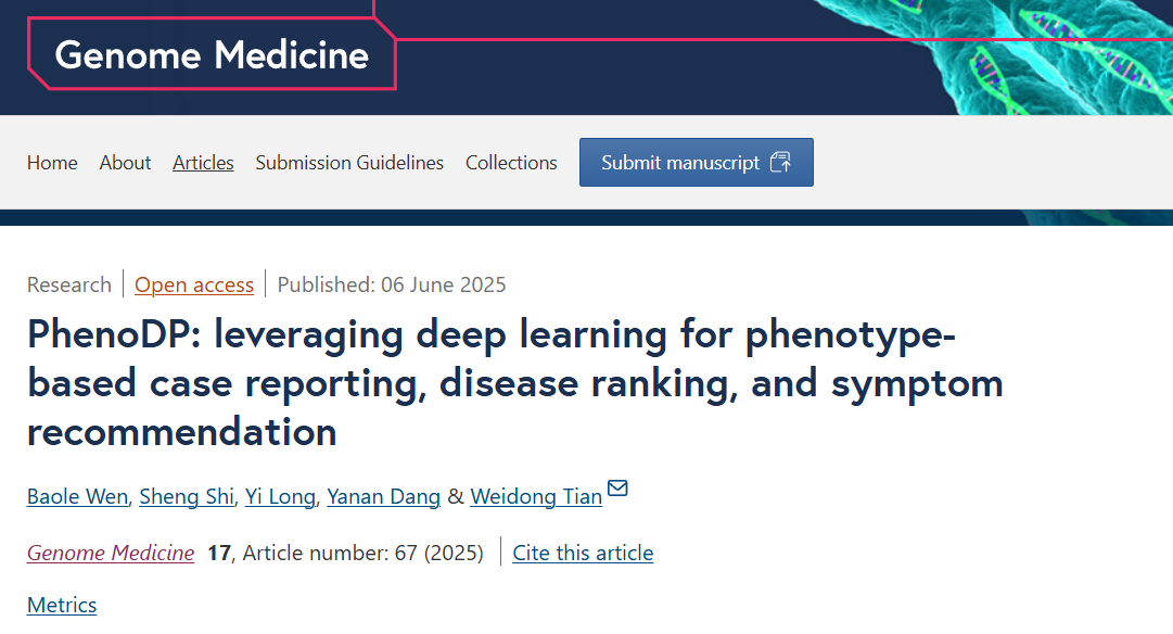 2025年6月6日,黑料社 田卫东教授课题组在 Genome Medicine期刊在线发表了题为《PhenoDP: Leveraging Deep Learning for Phenotype-Based Case Reporting, Disease Ranking, and Symptom Recommendation》的研究论文。该研究开发了一种新颖的表型驱动诊断工具 PhenoDP,融合大型语言模型(LLM)与对比学习技术,显著提升了孟德尔遗传病的诊断效率与准确率,为临床罕见病辅助诊断提供了高效、智能的解决方案。