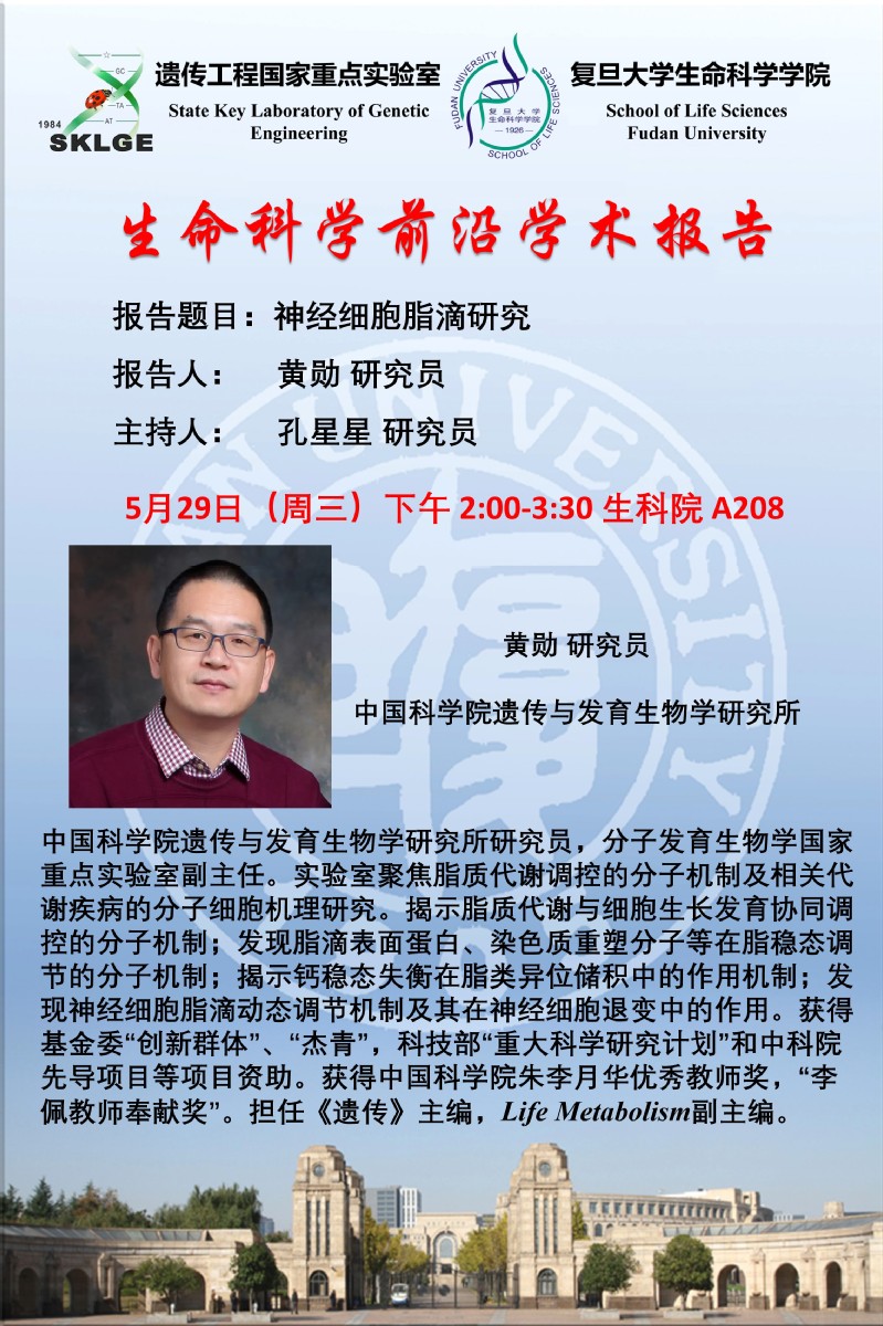 生命科学前沿学术报告-5月29日(周三)下午 2:00-3:30 , 黄勋 研究员(中国科学院遗传与发育生物学研究所),生科院A208