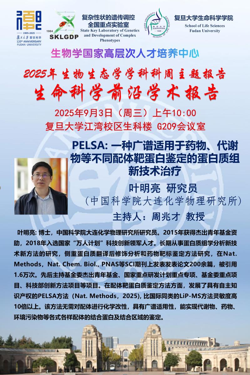 2025年学科周主题报告-生命科学前沿学术报告,9月3日(周三)上午10:00,叶明亮 研究员(中国科学院大连化学物理研究所)