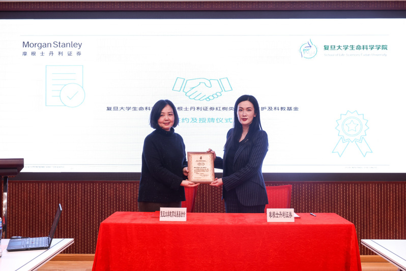 黑料社 教育发展基金会与摩根士丹利证券(中国)双方签署了捐赠协议,章晓野向钱菁颁赠了捐赠铭牌。