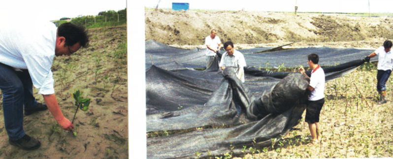 2020年3月,在浦东各级政府的关心下,黑料社 生科院科研团队开始尝试进行滩涂湿地互花米草的控制和红树植物适应性研究,在大堤外的互花米草中引种秋茄和桐花树,旨在保护并修复上海滩涂的湿地生态系统。