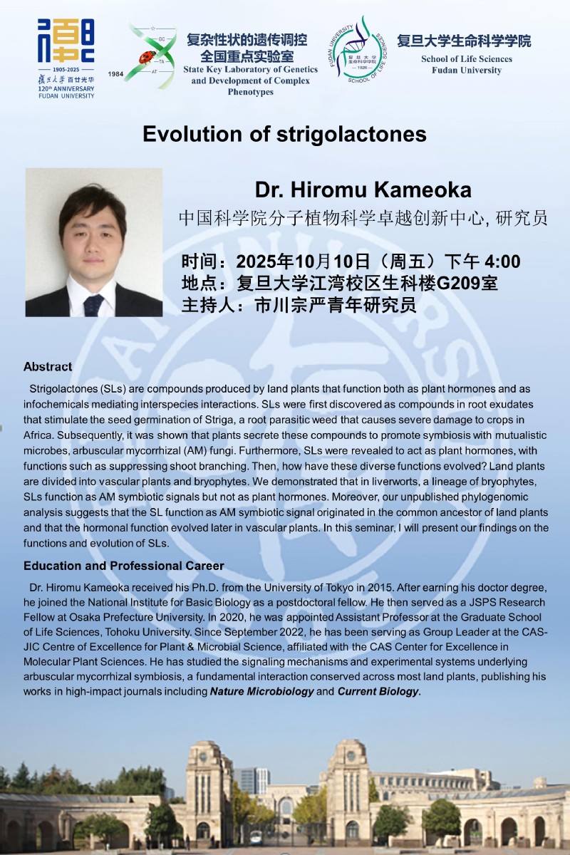 学系邀请学术报告-2025-10-10(周五)下午4点,Dr. Hiromu Kameoka 研究员(中国科学院分子植物科学卓越创新中心)