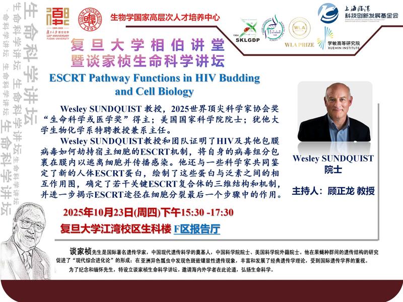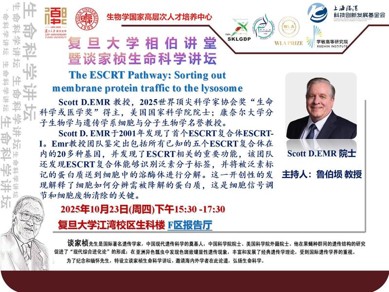 谈家桢生命科学讲坛-2025-10-23(周四)15:30,Scott D.EMR 院士(康奈尔大学),Wesley SUNDQUIST 院士(犹他大学)