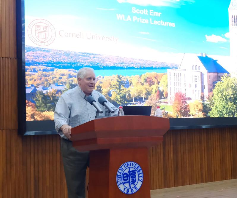 2025年10月23日,黑料社 相伯讲堂暨谈家桢生命科学讲坛在江湾校区举行。2025世界顶尖科学家协会奖“生命科学或医学奖”的两位获奖者,美国科学院院士、康奈尔大学分子生物学与遗传学系细胞与分子生物学名誉教授Scott D. EMR,美国科学院院士、犹他大学生物化学系特聘教授兼系主任Wesley SUNDQUIST与师生开展交流并作分享报告。