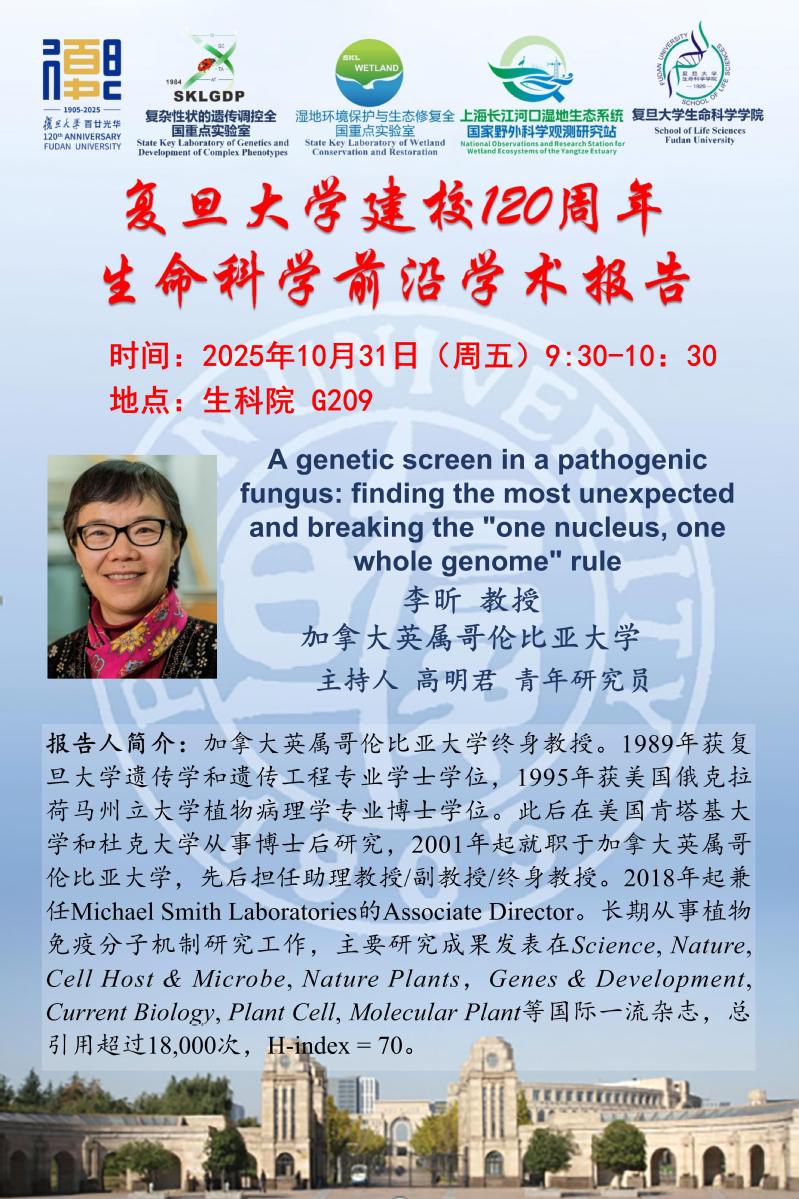 生命科学前沿学术报告-2025-10-31(周五) 上午9:30 ,李昕 教授 (加拿大英属哥伦比亚大学)