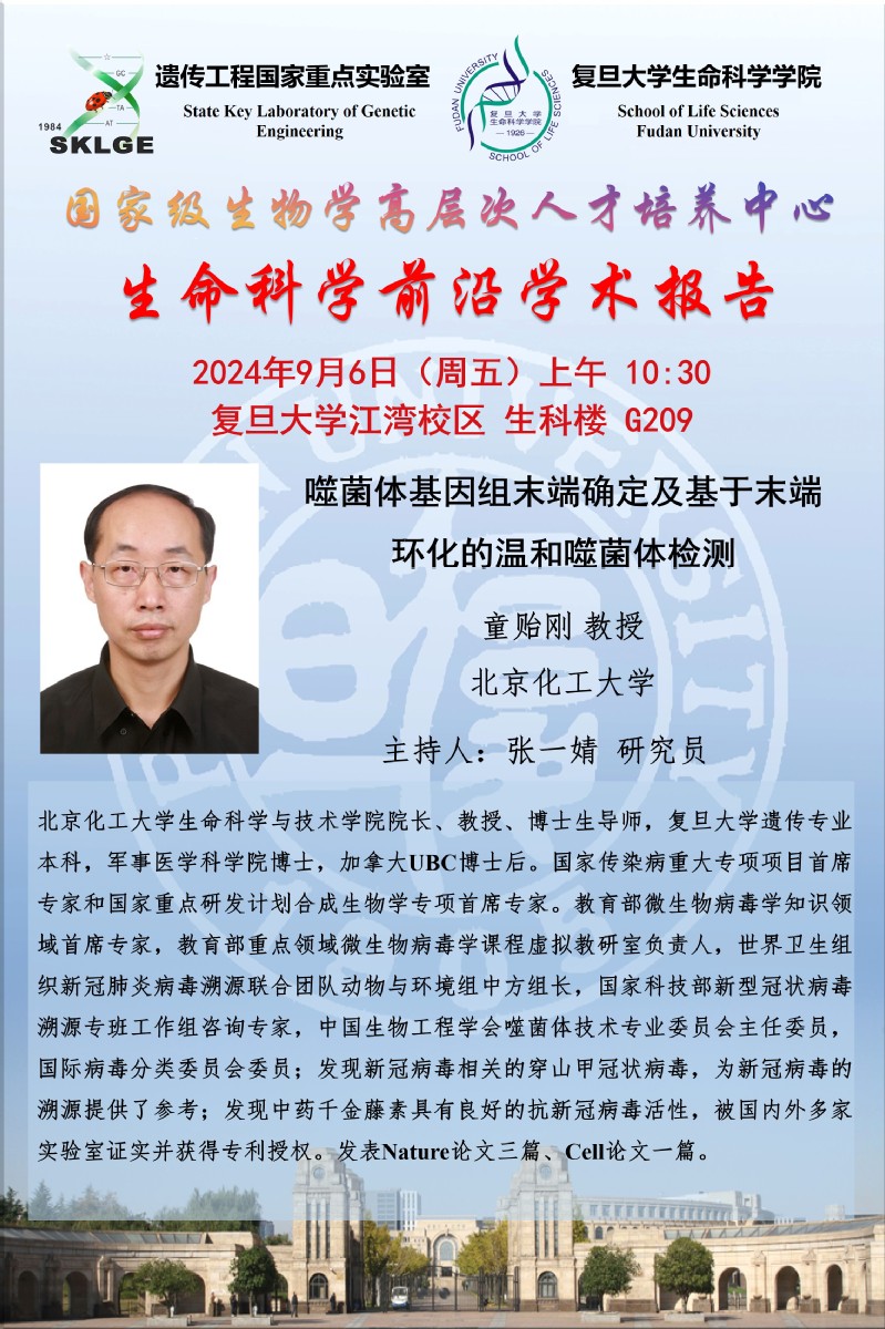 生命科学前沿学术报告-9月6日(周五)10:30,童贻刚 教授(北京化工大学)