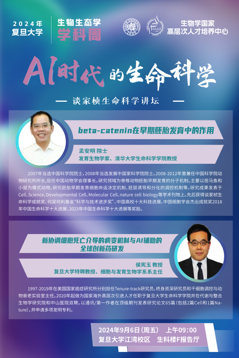 学科周-谈家桢生命科学讲坛--9月6日上午9:00,孟安明 院士 清华大学