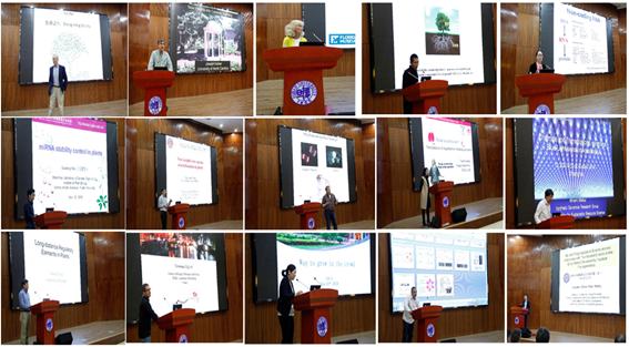 来自美国科学院院士、佛罗里达大学教授Douglas E. Soltis和Pamela Soltis夫妇,美国北卡罗来纳大学教堂山分校Joseph Kieber教授和Gregory Copenhaver教授,日本理化学研究所(RIKEN) Minami Matsui研究员,佐治亚大学Xiaoyu Zhang教授,法国国家科学研究中心(CNRS)的Dominique Gagliardi研究员和Jean Molinier研究员,以及植物所马红教授、郑丙莲研究员、缑金营研究员、任国栋研究员、王应祥研究员、李琳青年研究员、常芳副教授和黄建勋青年副研究员先后为大家献上了精彩纷呈的高水平学术报告。报告内容涵盖植物进化与植物多样性、植物发育与激素调控、植物光信号转导、植物表观遗传与RNA生物学、植物代谢与抗病,植物生殖发育等多个研究领域。