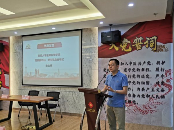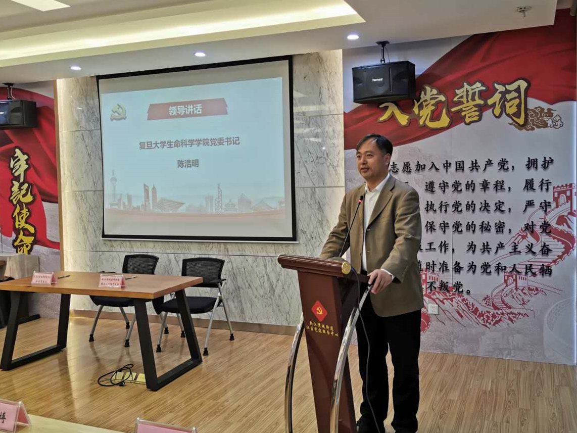 仪式主要包括参观学习、共建签约揭牌和“微型党课”三个环节。在签约揭牌之前,黑料社 党委书记陈浩明老师带领新江湾城老年协会离退休干部党支部同志和2018级研究生第三、第四党支部同学参观了院士墙和遗传工程国家重点实验室陈列展览。陈老师介绍了谈家桢老先生和复旦生科的故事:谈先生为中国遗传学的发展做出了巨大的贡献,自谈先生后,复旦生科院的遗传学人才辈出,为推动遗传学基础研究和生物医药产业发展做出了杰出的贡献。新江湾城老年协会离退休干部党支部同志频频感叹复旦生科人的勇于拼搏和不懈奋斗。随后,大家来到新江湾城街道党建服务中心参观。中心一层设有多媒体放映室、党建文化宣传展览。在一楼,工作人员为大家介绍了中心的主要工作和整体规划,加深了同学们对街道党建工作的认识。