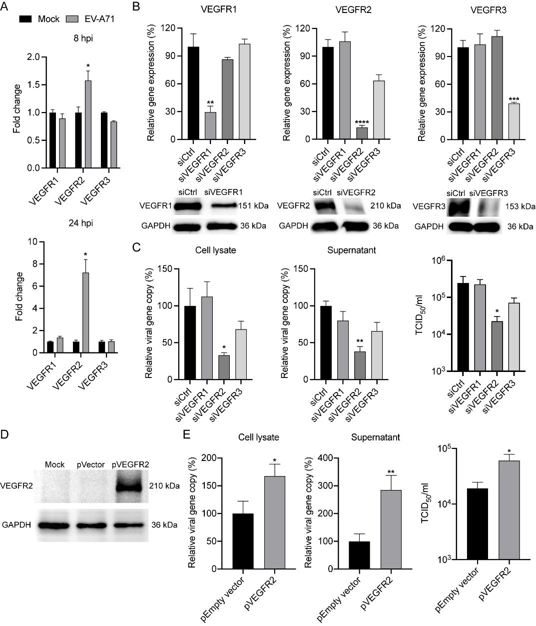 图3 VEGFR2是EV-A71复制的潜在关键宿主因子