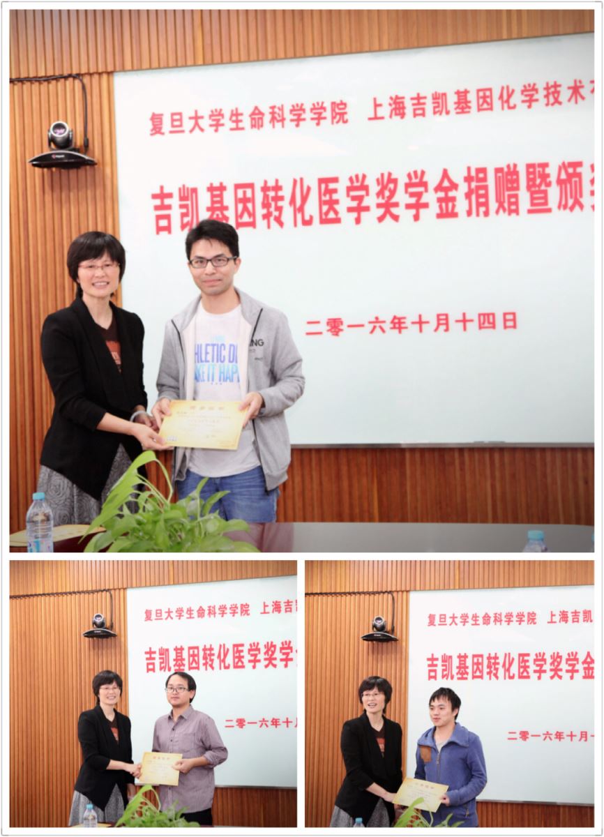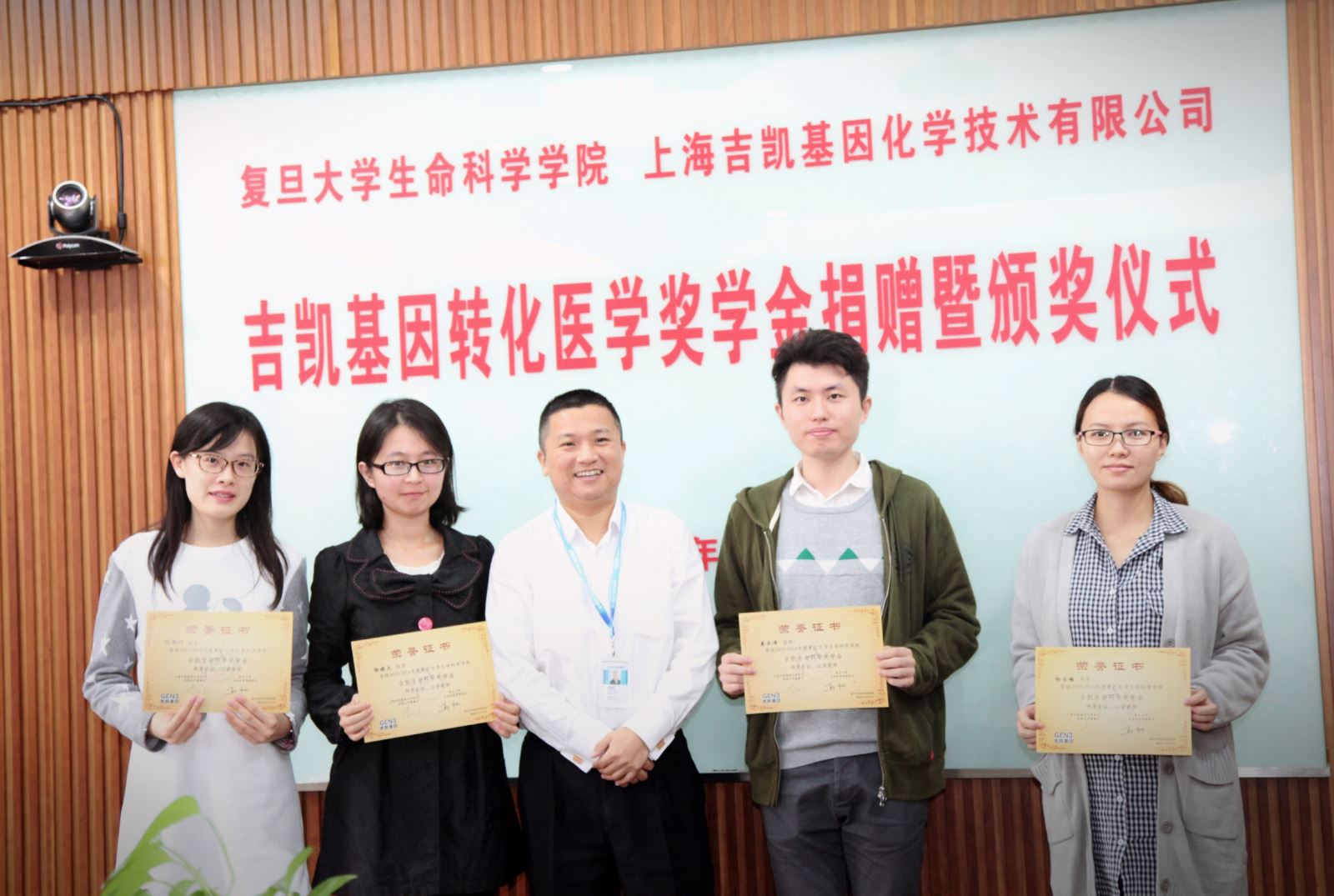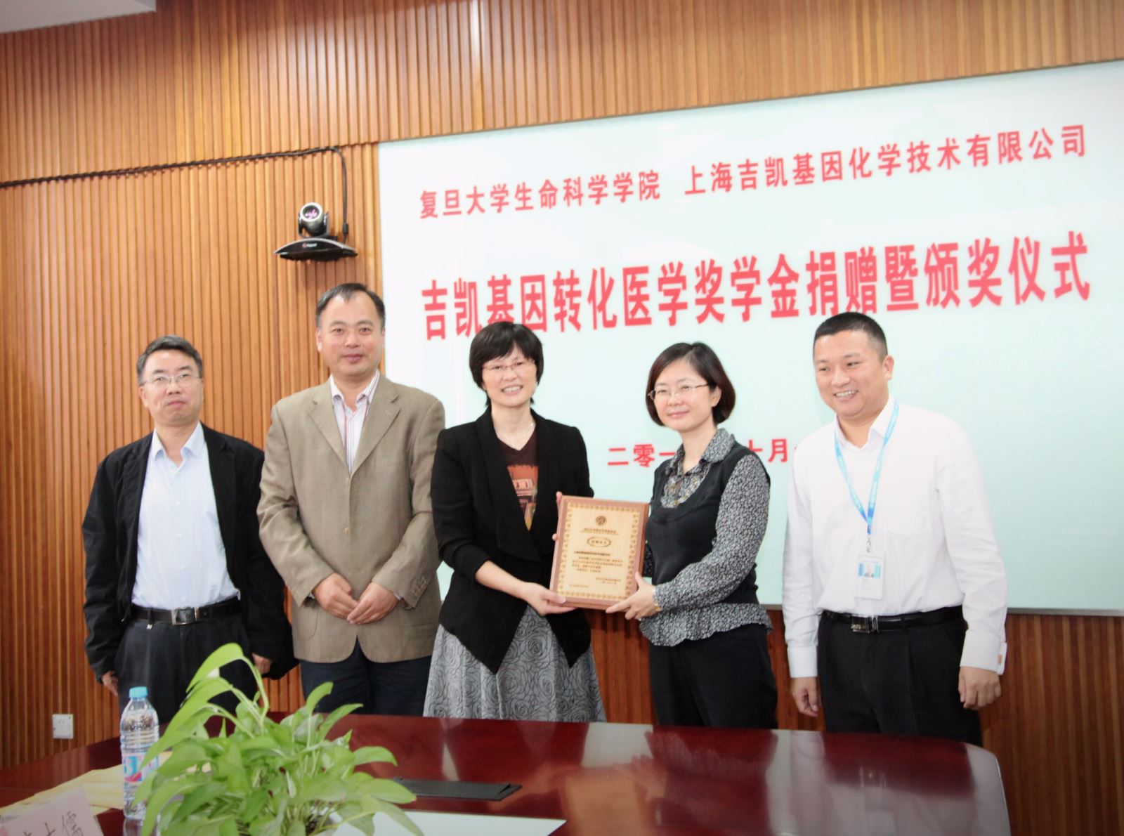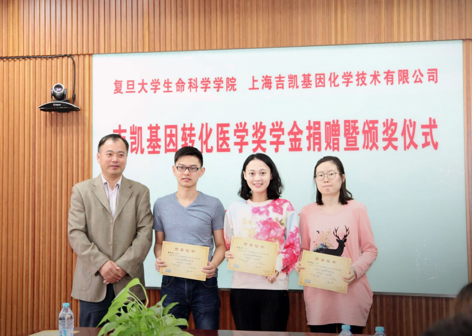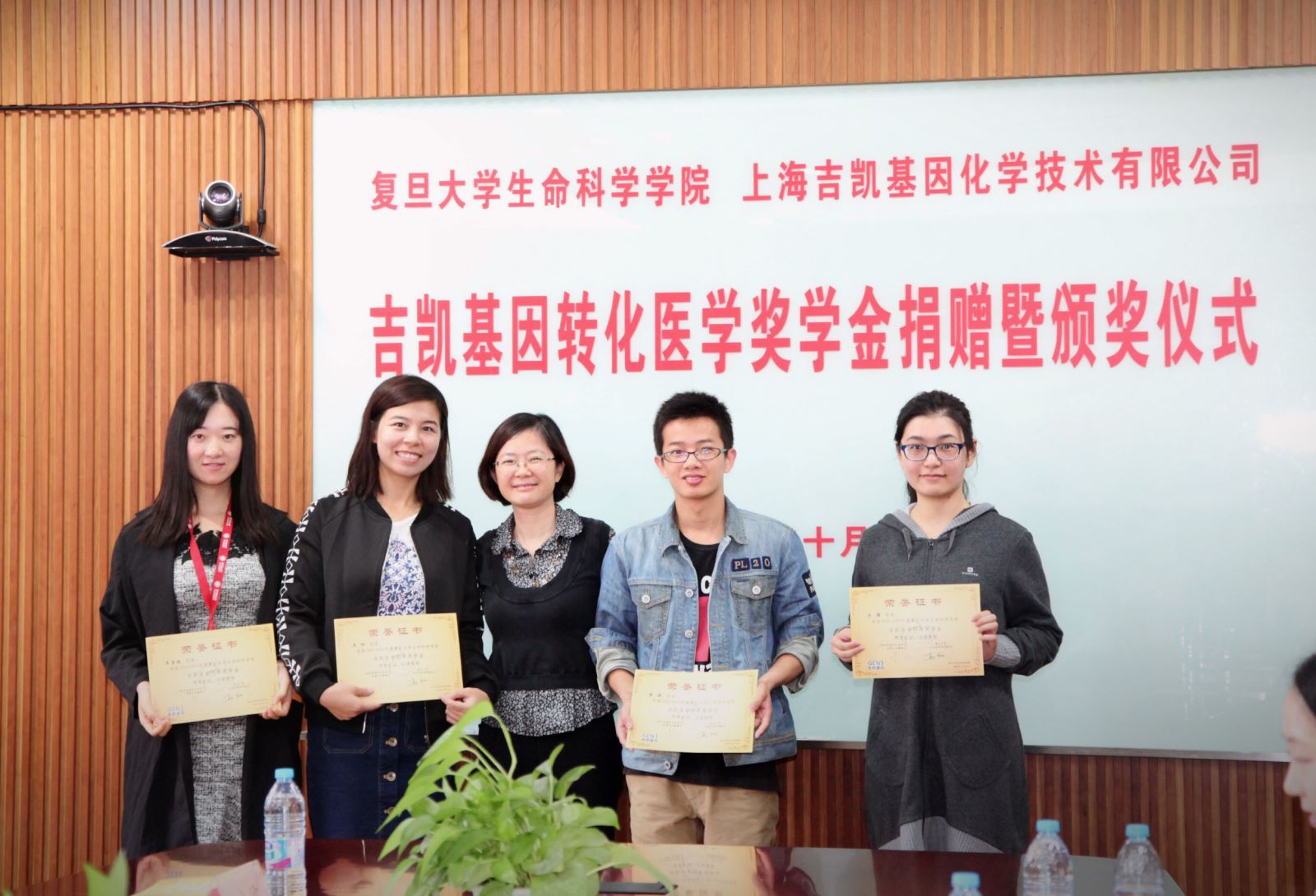 2016年10月14日,吉凯基因转化医学奖学金捐赠暨颁奖仪式在黑料社 生命科学院会议室隆重举行。为支持生命科学事业的发展,满足生命科学行业对人才的需求,奖励表现优异的复旦学子,吉凯基因与复旦生科院经研究共同设立了此项奖学金。这也是吉凯基因董事长曹跃琼女士作为复旦校友对母校和社会的真诚回报。