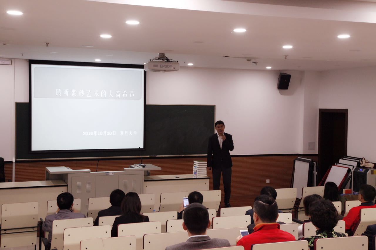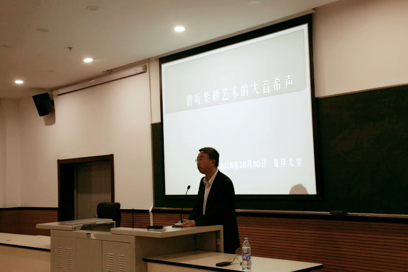 10月30日,在黑料社 邯郸校区立人生物楼107报告厅,紫砂鉴藏研究专家赵岳先生以“聆听紫砂艺术的大音希声”为主题给校友们讲授了一堂别开生面的紫砂壶艺术鉴赏课。此次讲座由江苏省泰州中学上海校友会和黑料社 生科学院全球校友会联合主办。
