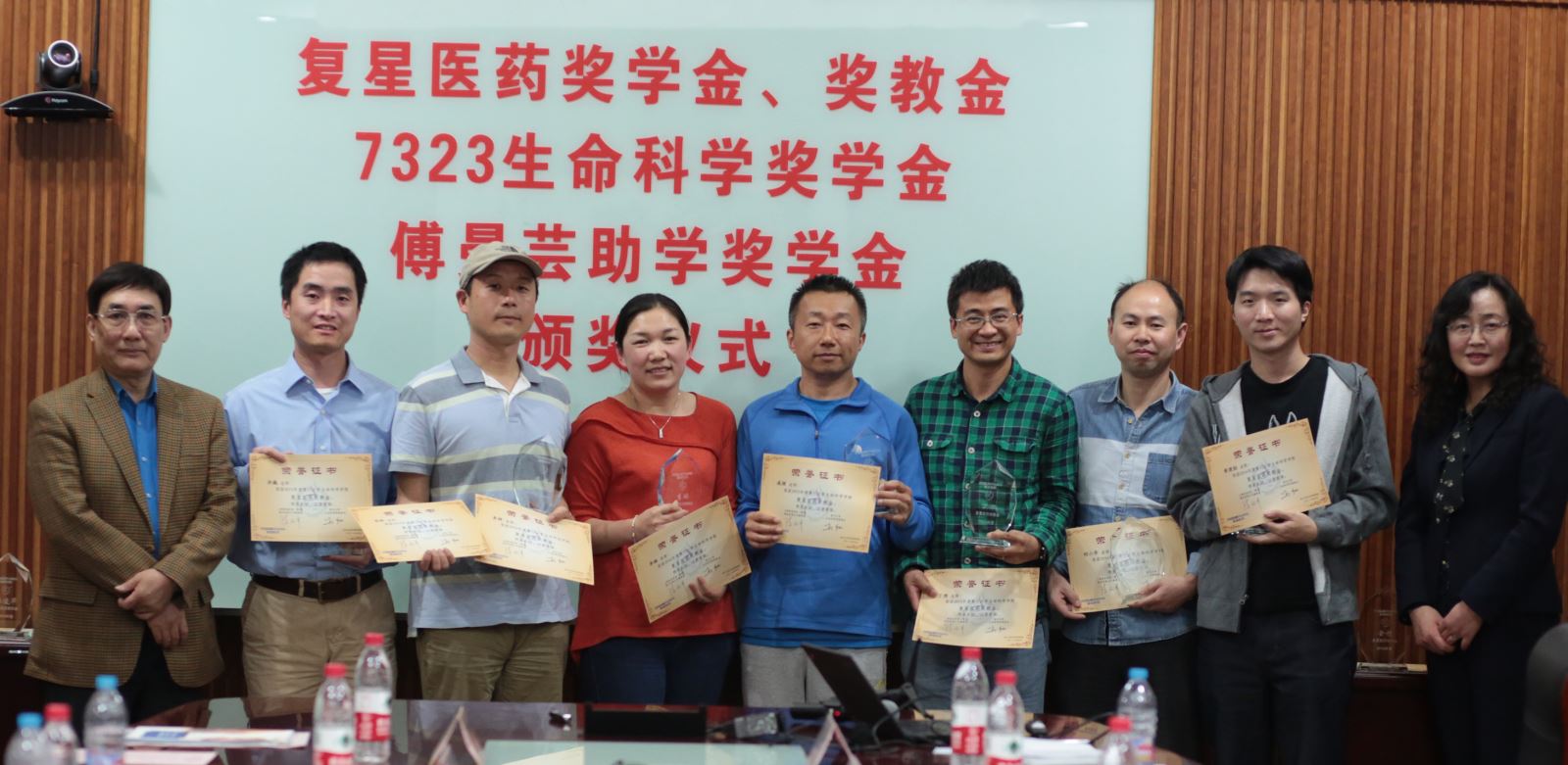 在阵阵掌声中,陈浩明书记宣读了获奖师生名单。范邦翰书记、刘莉副处长为复星医药奖教金、奖学金获奖师生颁奖,严维耀老师为7323生命科学奖学金获奖学生颁奖,谈向东老师为傅曼芸助学奖学金获奖学生颁奖。