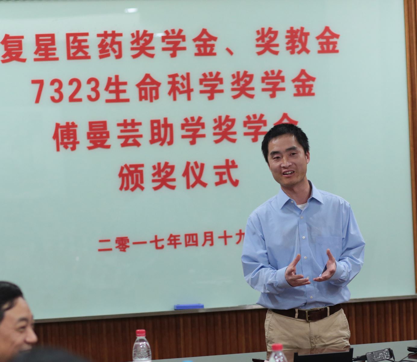 为了能够让在场师生们更深入的了解复星医药,在颁奖典礼开始之初,复星医药首先播放了集团的宣传片,介绍了复星医药的企业理念以及发展现况。随后,陈浩明书记分别介绍了复星医药奖教(学)金,7323生命科学奖学金,傅曼芸助学奖学金三大奖项的背景情况,并代表学院感谢复星医药、7323微生物班以及谈家桢基金会对学院的慷慨资助。