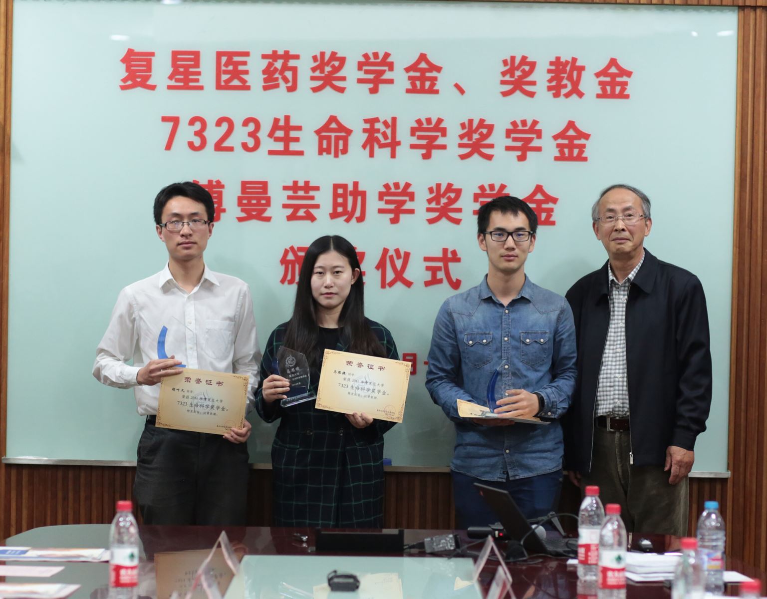 教育发展基金会副秘书长、外联处副处长刘莉老师,7323生命科学奖学金理事会代表严维耀老师,谈家桢基金会理事长、上海海洋大学副教授谈向东老师,党委书记陈浩明老师、党委副书记蒋蕾老师以及获奖师生。典礼由陈浩明书记主持。