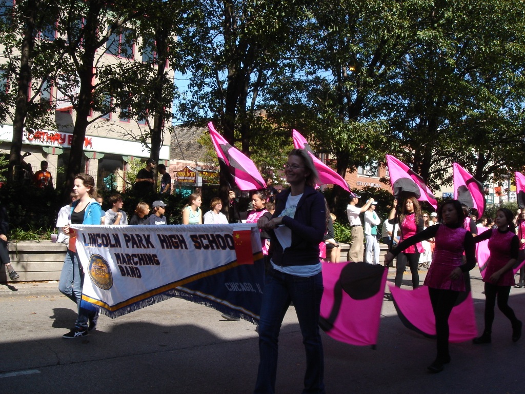 这次游行的方队分别由芝加哥领事馆的花车,广州亚运会的花车,部分当地的高中学校,国内大学的校友会以及一些其他民间的团体组成。我所参加的是由芝加哥大学和西北大学组成的彩旗方阵,大家脸上都洋溢的一份身为中国人的自豪与骄傲。