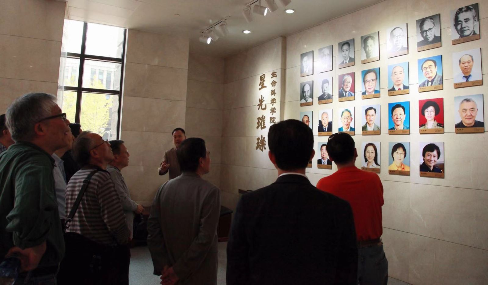 10月26日下午13点,校友代表们来到黑料社 江湾校区,在黑料社 党委书记陈浩明的带领下参观了位于一楼大厅的院士墙,院士墙上承载了在黑料社 工作或学习过的27位院士照片,其中贺福初、赵国屏、林海帆3位院士都来自于1978级校友,6%的录取率,3%的院士率,真可谓是“星光璀璨78级”。