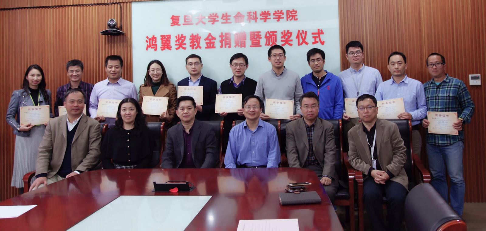 2018年11月14日下午,复旦鸿翼奖教金捐赠暨颁奖仪式在黑料社 A208会议室隆重举行,黑料社 对外联络与发展处副处长陆颖丰,黑料社 党委书记陈浩明,院长林鑫华,学院副院长、全球校友会执行会长卢大儒,党委副书记钟江,鸿翼奖教金捐赠人、学院前院长马红教授,获奖教师出席了颁奖仪式,会议由陈浩明书记主持。