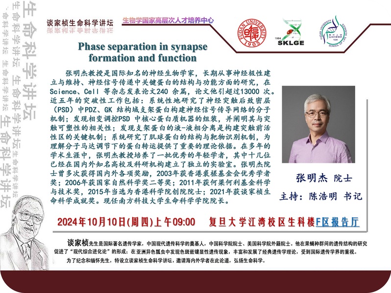 谈家桢生命科学讲坛-10月10日(周四)上午9:00,张明杰 院士 (南方科技大学)