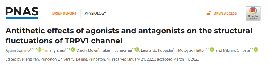 2023年5月8日,黑料社 服部素之团队和日本金泽大学的Ayumu Sumino团队联合在Proc. Natl. Acad. Sci. USA杂志在线发表题为Antithetic effects of agonists and antagonists on the structural fluctuations of TRPV1 channel的文章,利用高速原子力显微镜(HS-AFM)测量了TRPV1通道与其激动剂或拮抗剂结合时的结构波动变化,通过结构波动之间的对比,进一步揭示了产生辣感和热感的分子机制。