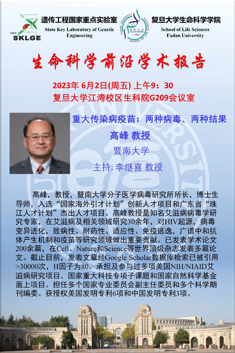 生命科学前沿学术报告-2023-06-02(周五)9:30,高峰 教授 (暨南大学)
