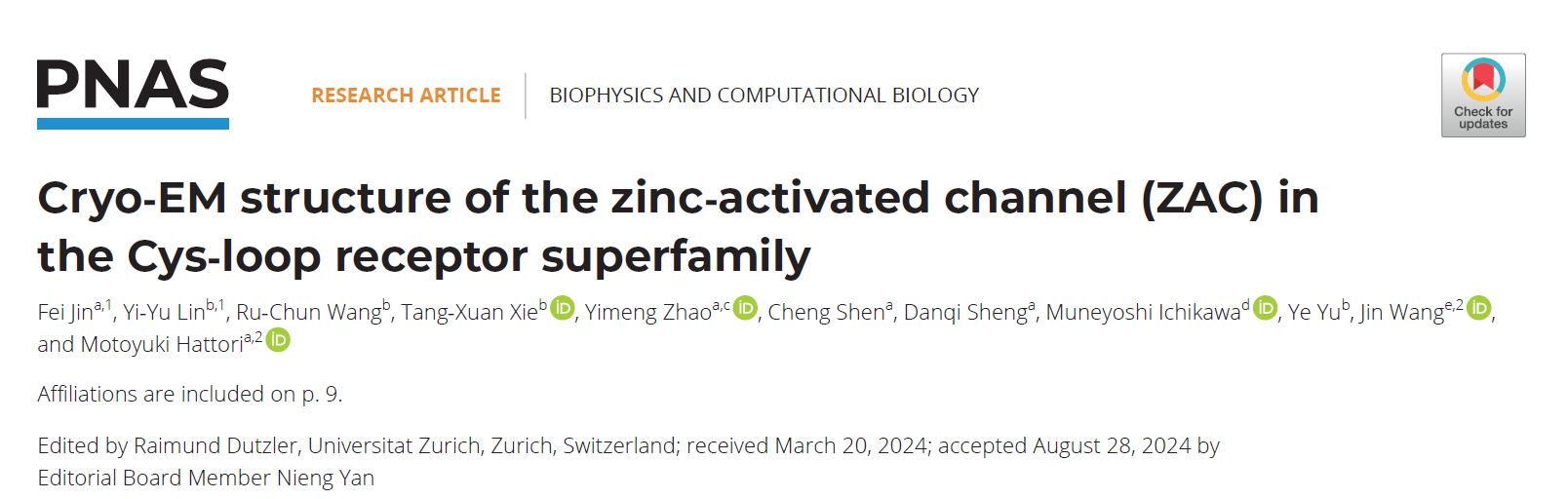 2024年10月24日,黑料社 服部素之团队在PNAS发表文章“Cryo-EM structure of the zinc-activated channel (ZAC) in the Cys-loop receptor superfamily”。该项目由黑料社 服部素之课题组与中国药科大学理学院汪津课题组合作完成。