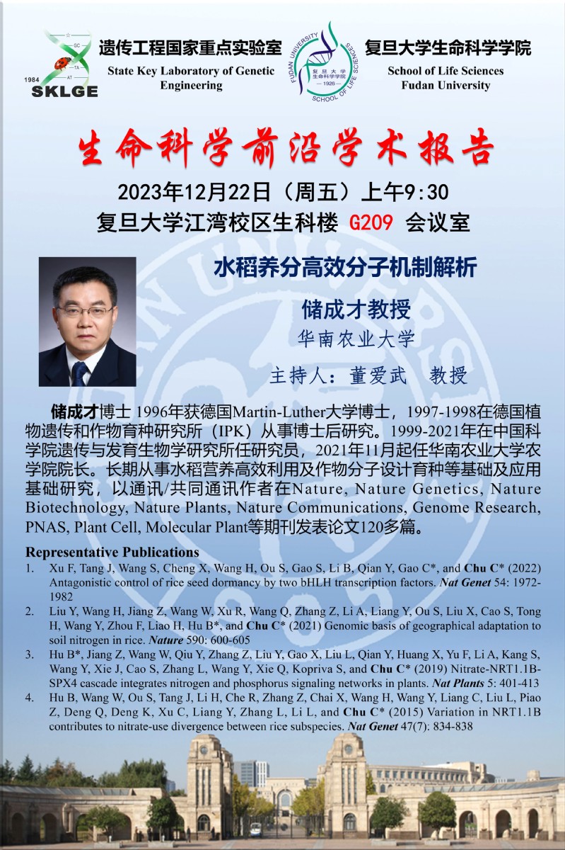 生命科学前沿学术报告-2023-12-22(周五),储成才 教授(华南农业大学),生科院G209