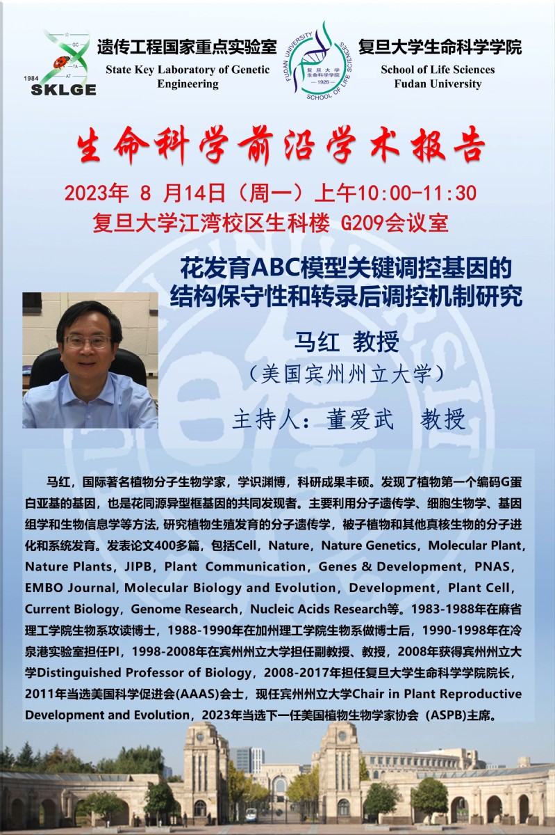 生命科学前沿学术报告-2023-08-14(周一)10:00,马红 教授(美国宾州州立大学)