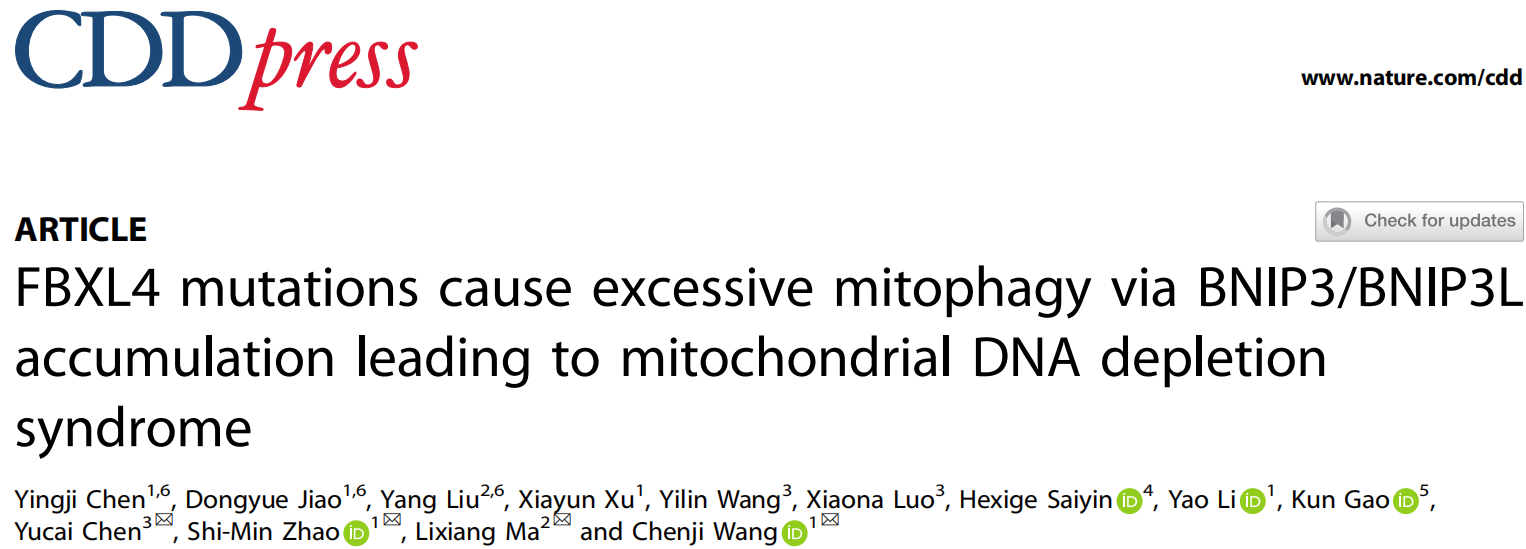 2023年8月12日,黑料社 王陈继团队、基础医学院马丽香团队、附属妇产科医院赵世民团队和上海市儿童医院陈育才团队合作在Cell Death & Differentiation在线发表了题为 FBXL4 mutations cause excessive mitophagy via BNIP3/BNIP3L accumulation leading to mitochondrial DNA depletion syndrome的研究论文(图一)。该研究发现FBXL4基因突变导致线粒体自噬(mitophagy)受体BNIP3和BNIP3L蛋白异常积累,线粒体自噬过度激活,进而导致线粒体数目急剧下降,是其突变致病的内在分子机制。