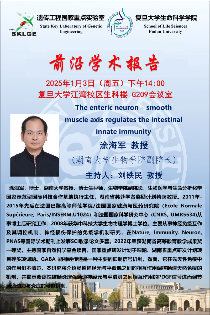 学系报告--2025-1-03(周五)14:00,涂海军 教授(湖南大学生物学院副院长)