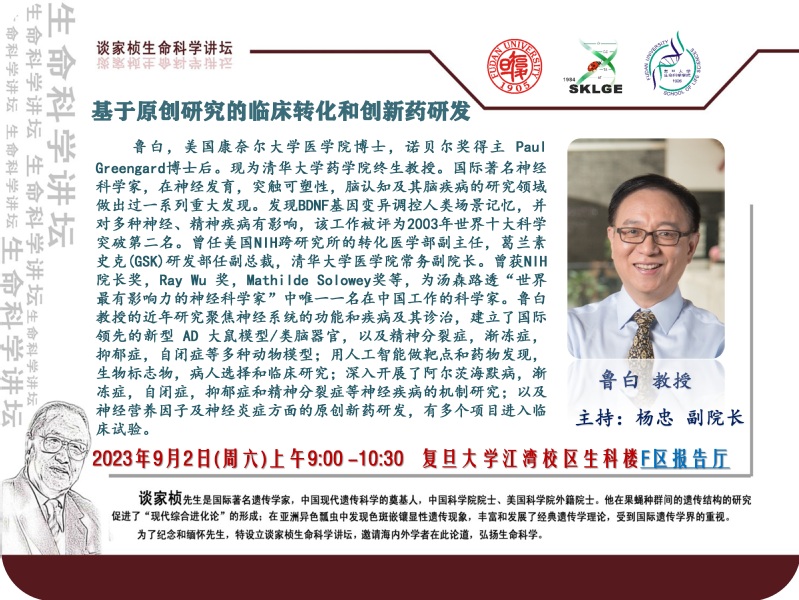 谈家桢生命科学讲坛-2023-09-02(周六)上午9:00,鲁白 教授(清华大学)