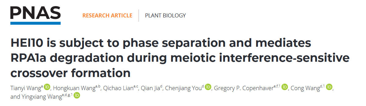 此外,本研究还证明了拟南芥HEI10的E3泛素连接酶活性,并筛选到了其底物ssDNA结合蛋白RPA1a,并揭示了HEI10的相分离对于RPA1a的泛素化降解具有促进作用。