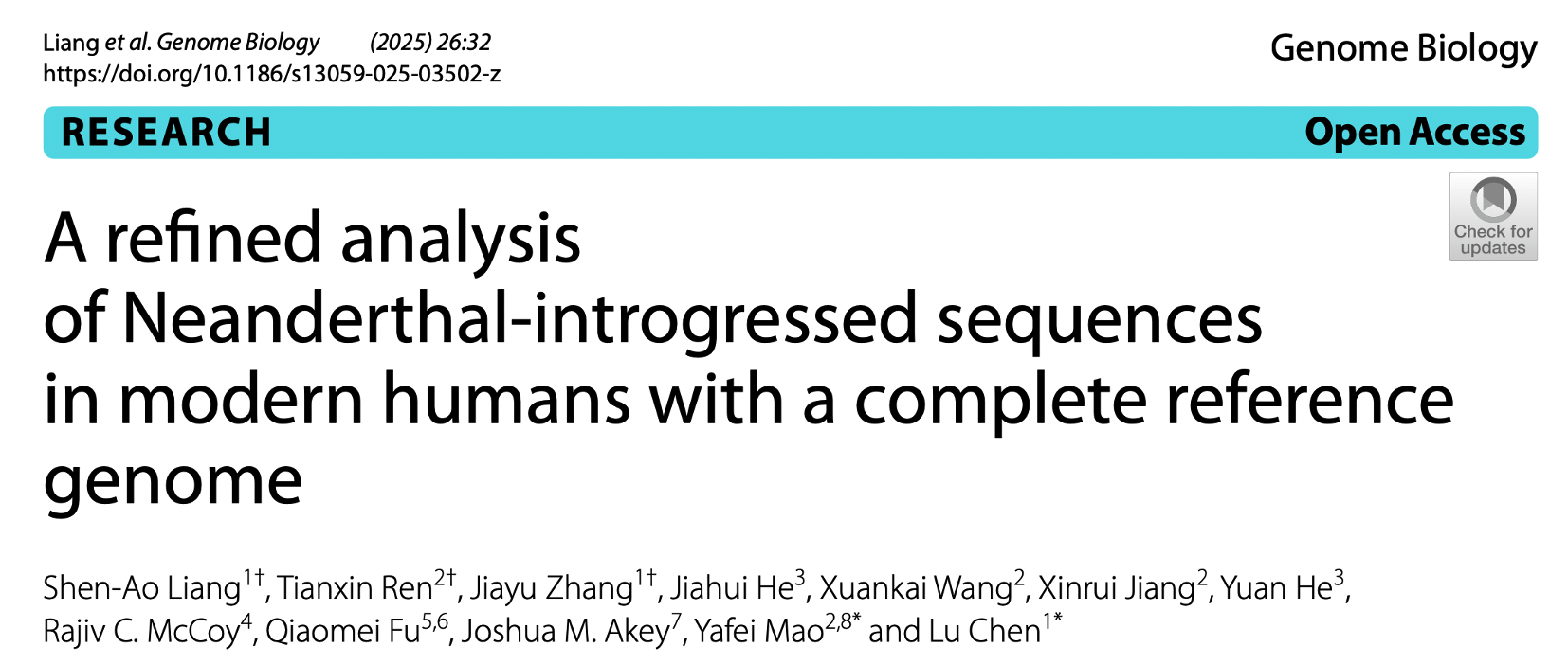 Chen L, Wolf AB, Fu W, Li L, Akey JM. Identifying and Interpreting Apparent Neanderthal Ancestry in African Individuals.Cell. 2020;180:677-687 e616.