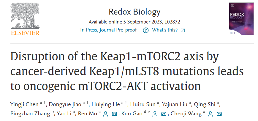 总之,这项工作本研究首次提出了“Keap1-mTORC2-AKT”信号调节轴失调在肿瘤发生发展过程中的重要作用,为mTOR、AKT抑制剂应用于Keap1突变型肿瘤的靶向治疗提供了理论基础。